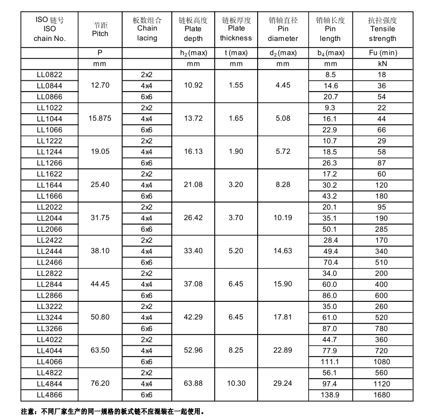 板式鏈, LL 系列
